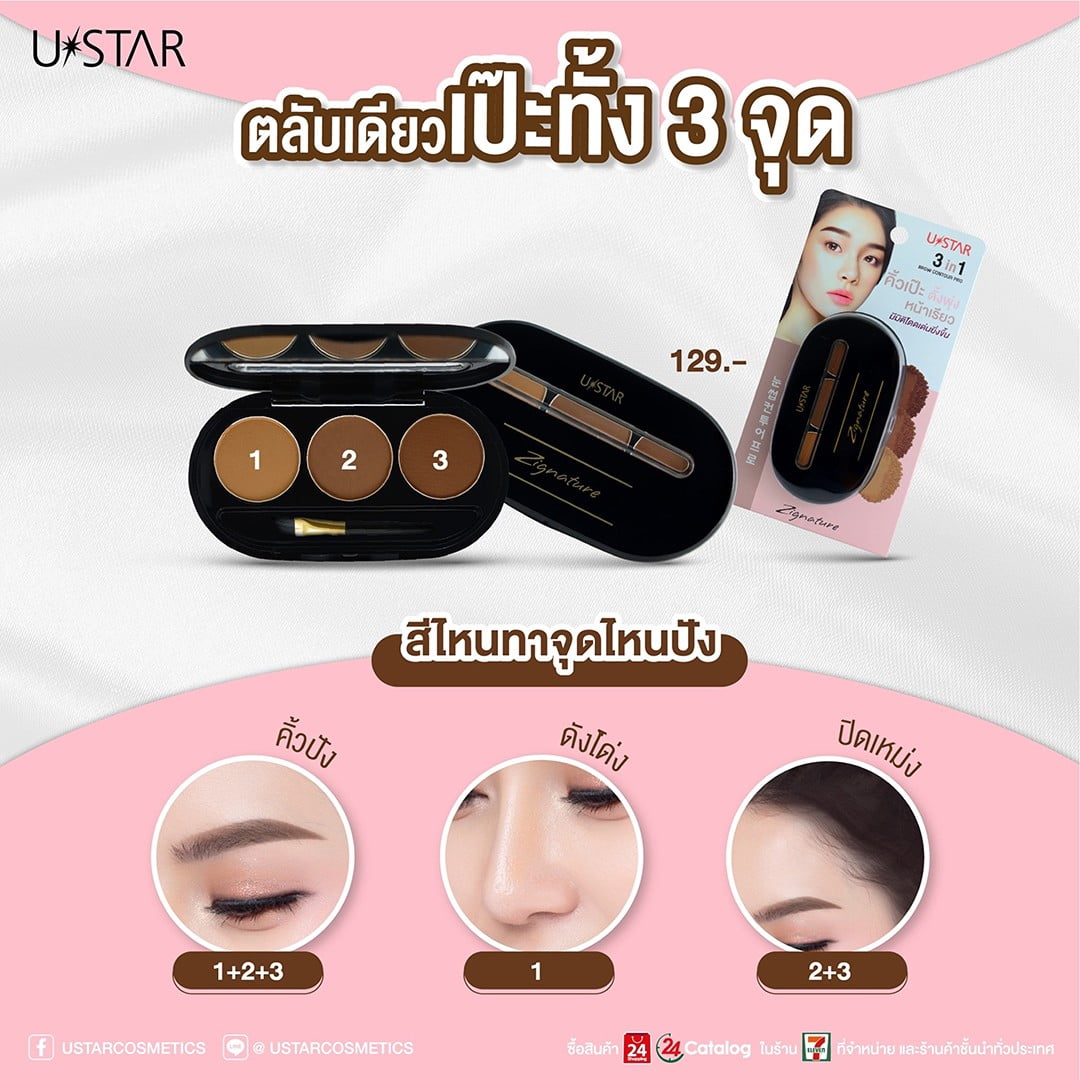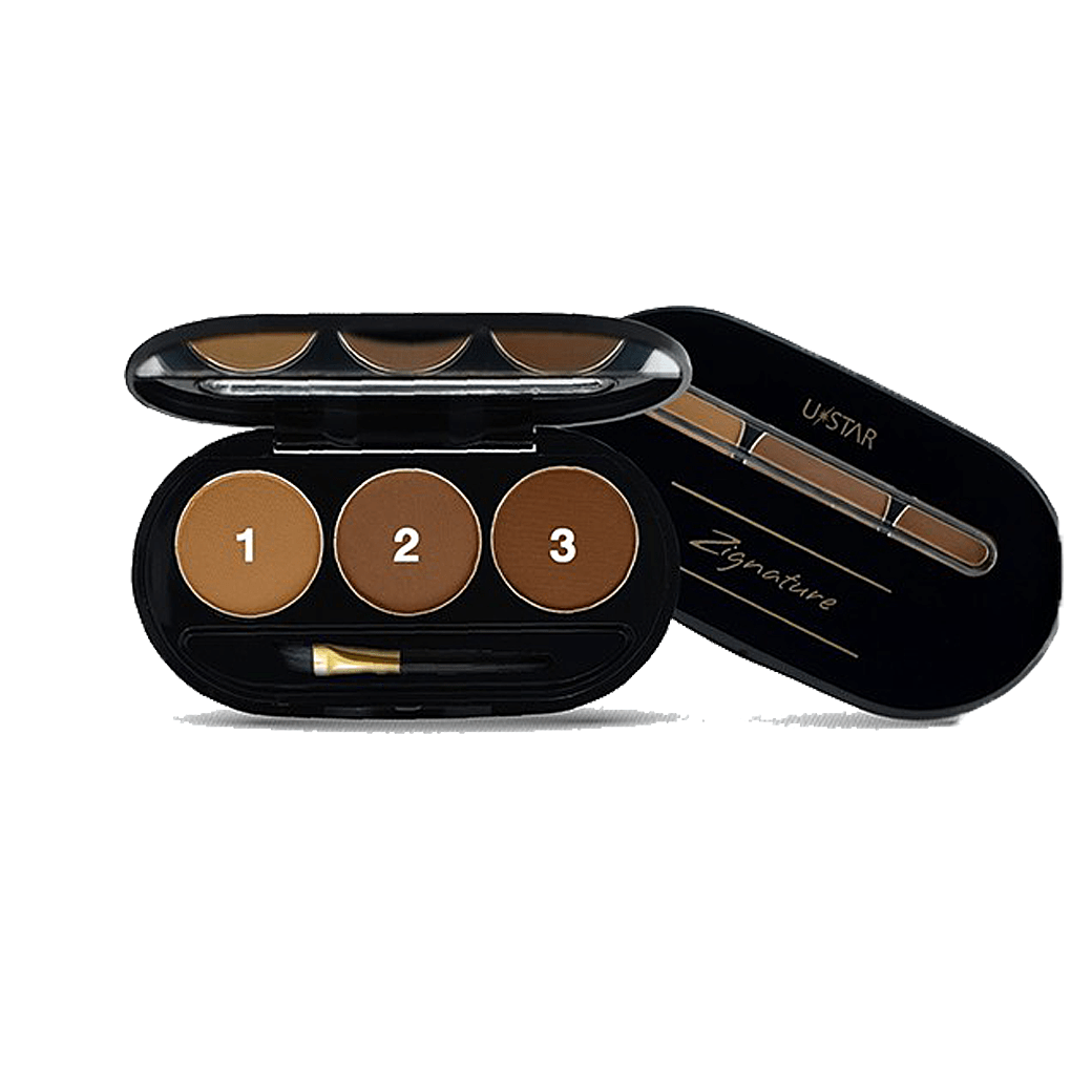 ? 3 โทนไล่ระดับอ่อน-เข้ม เฉดสีน้ำตาลกลมกลืนเป็นธรรมชาติ เนื้อแมทท์ เนียนนุ่มละมุน เกลี่ยง่าย สีชัด ติดผิวได้ดี เบลนด์คิ้ว ไล้ดั้ง เขียนไรผม คอนทัวร์กรอบหน้า มีมิติโดดเด่นยิ่งขึ้น