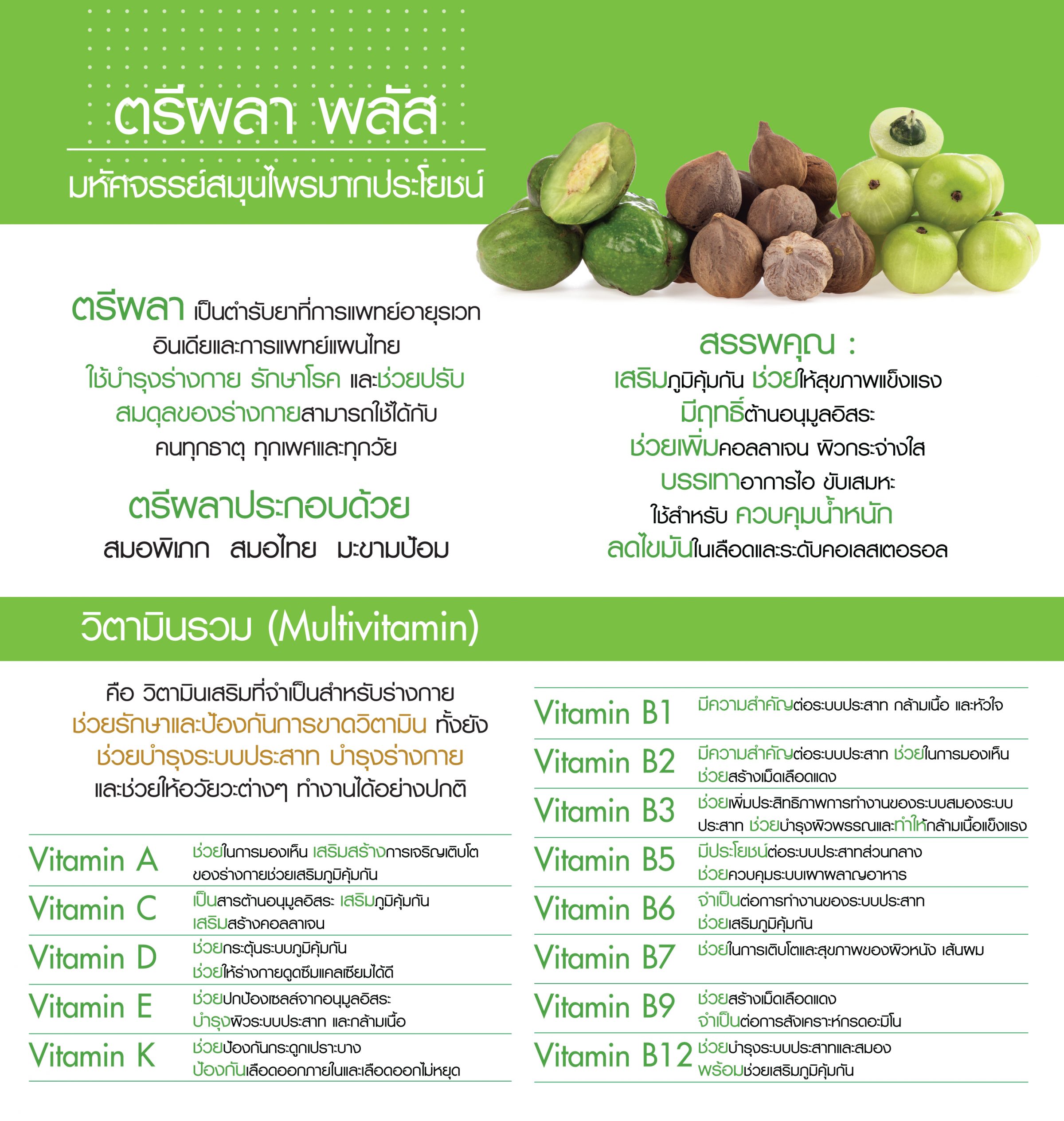 อุดมด้วยสารอาหารที่จำเป็นต่อการบำรุง มีฤทธิ์ต้านอนุมูลอิสระและช่วยขับสารพิษในร่างกาย เพิ่มประสิทธิภาพด้วย มัลติวิตามินที่มีความจำเป็นต่อร่างกาย 13 ชนิด